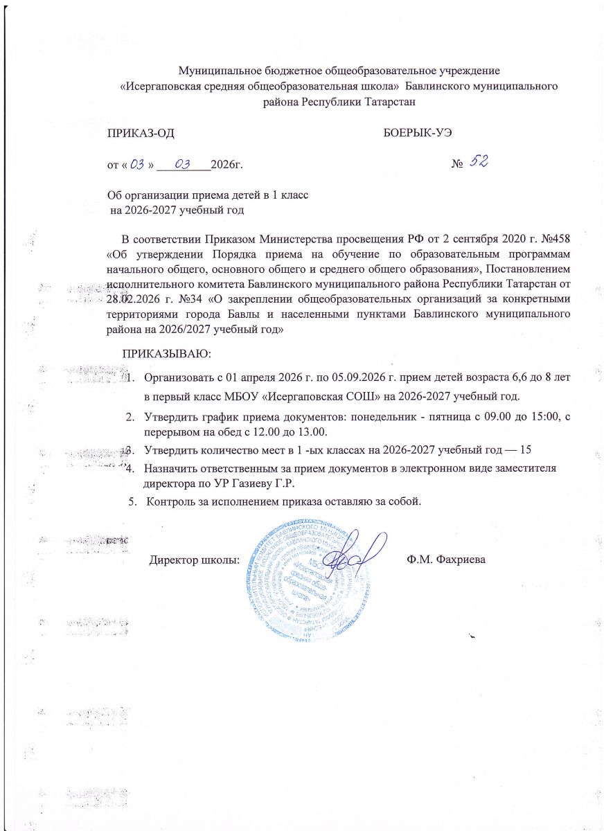 МБОУ «Исергаповская средняя общеобразовательная школа» Бавлинского муниципального района РТ/ТР Баулы муниципаль районы Исергәп урта гомуми белем бирү мәктәбе