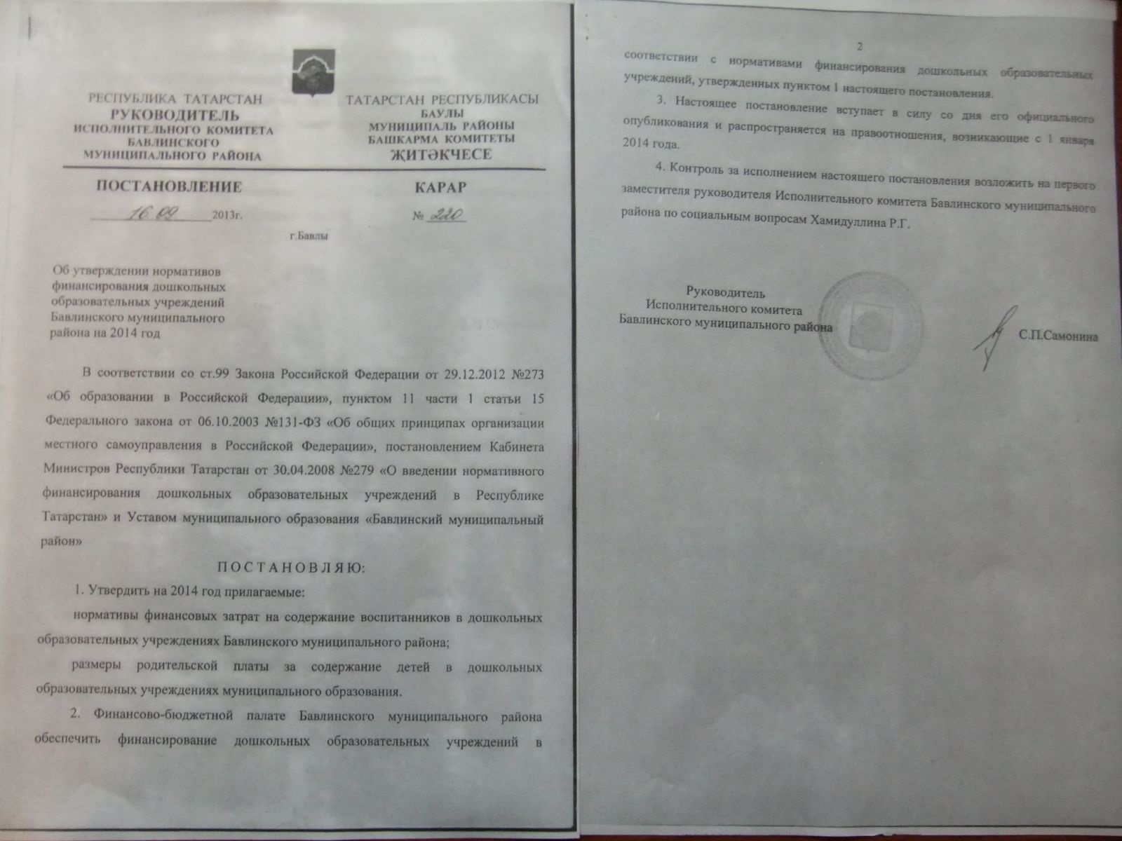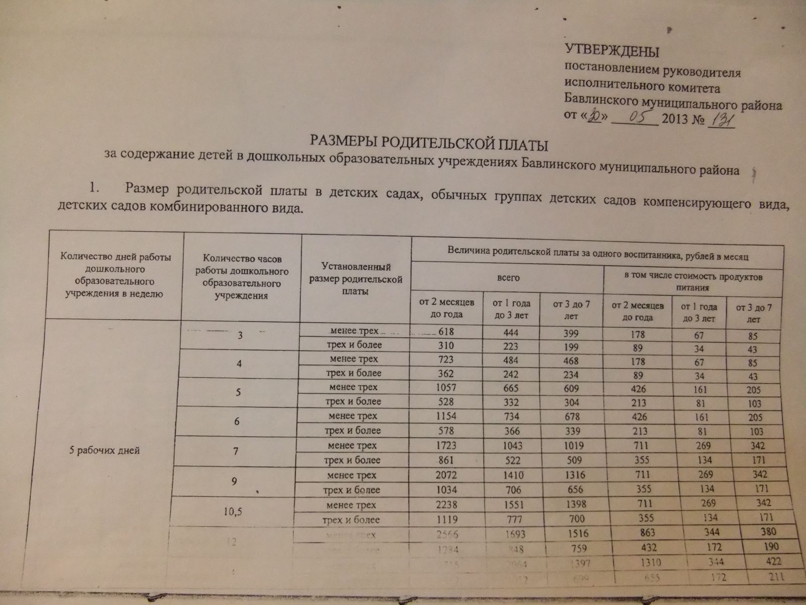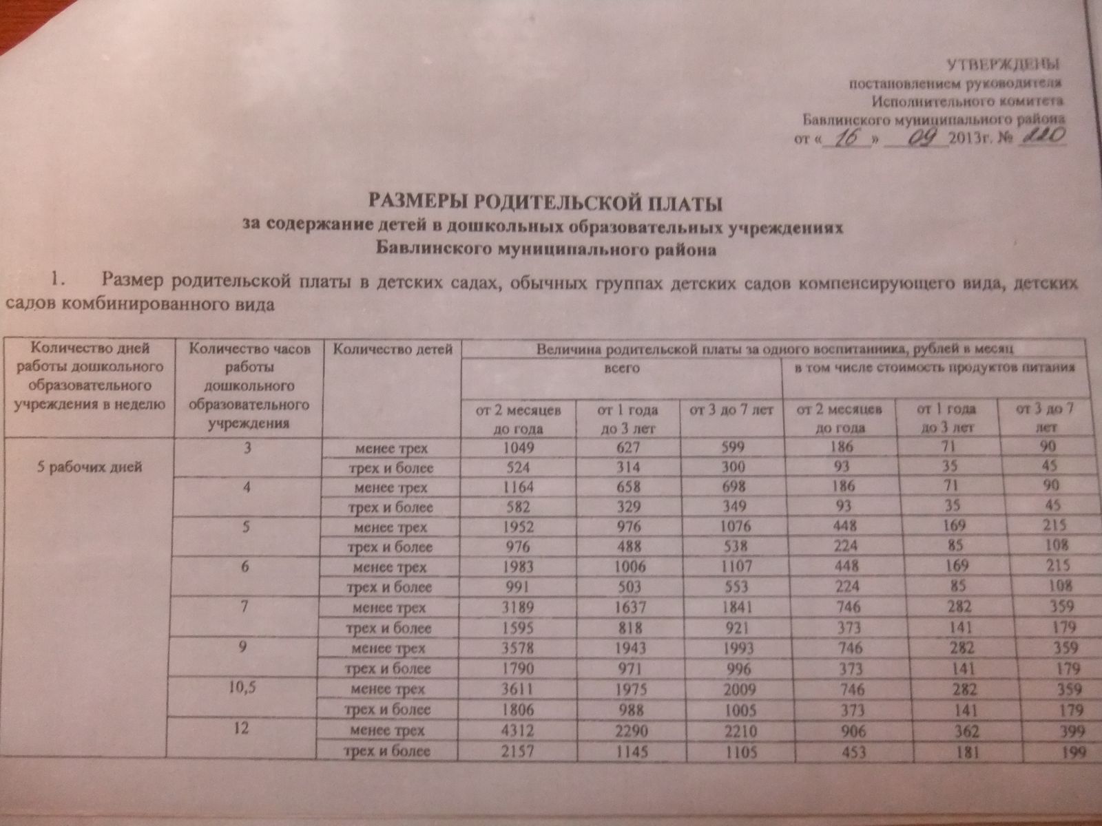 Постановление о размерах родительской платы №298 от 25.09.2014