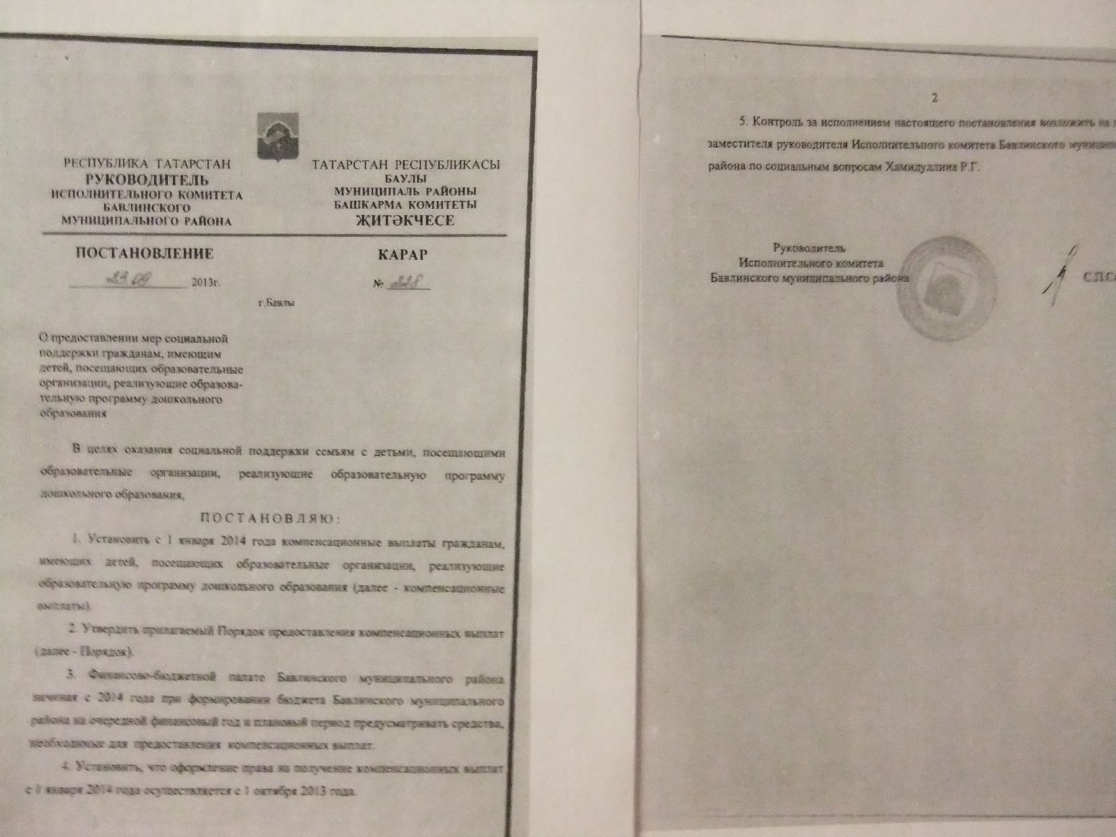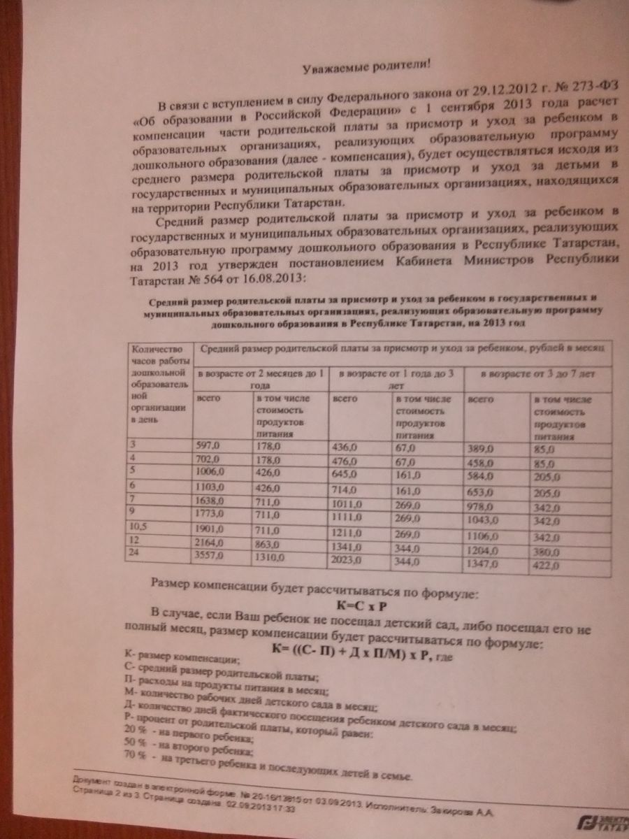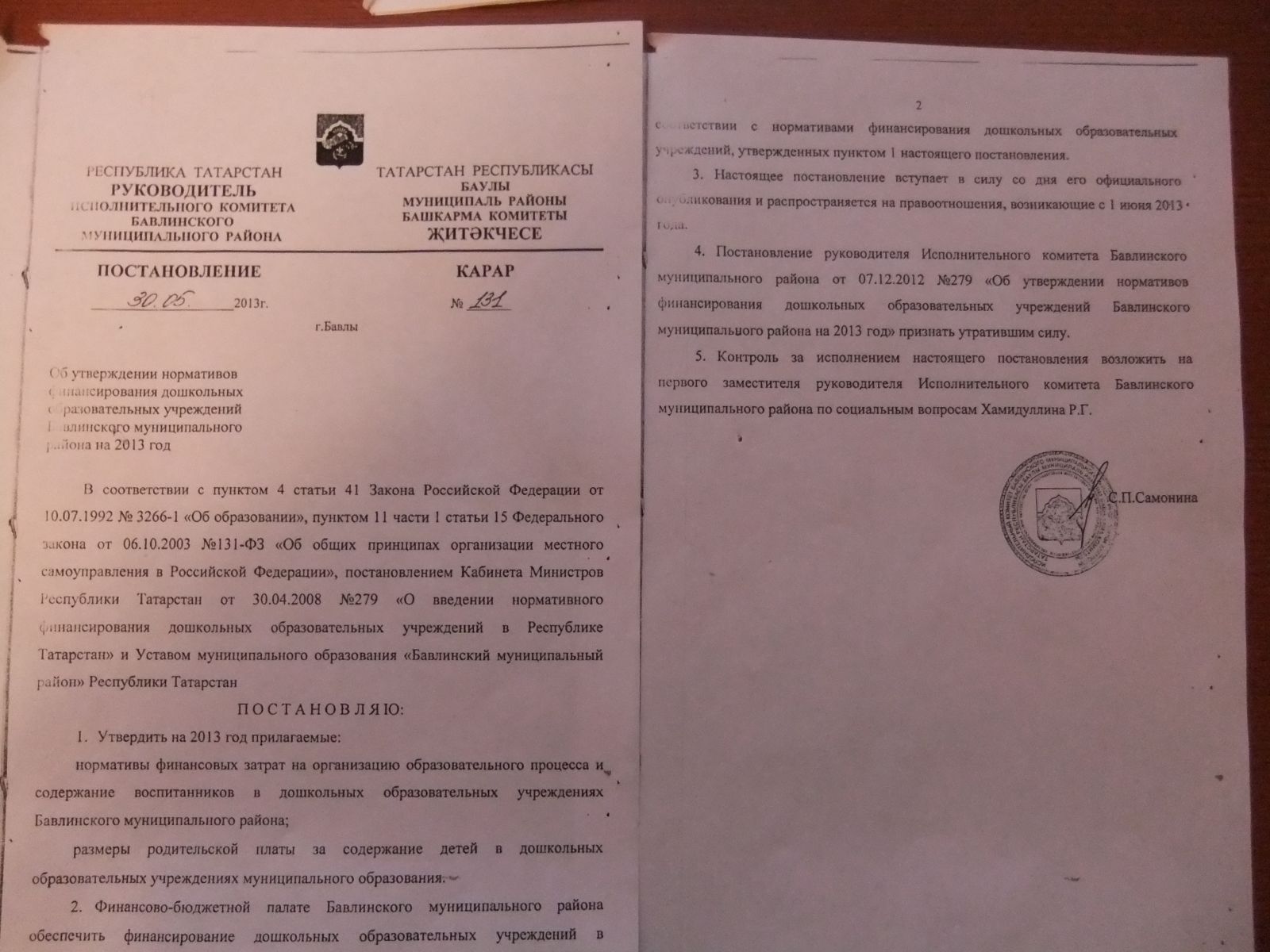 Постановление о размерах родительской платы №298 от 25.09.2014