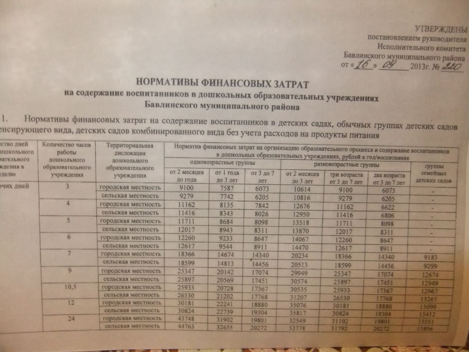 Нормативы финансовых затрат на содержание воспитанников в ДОУ( утв.от 16.09.2013г №220)