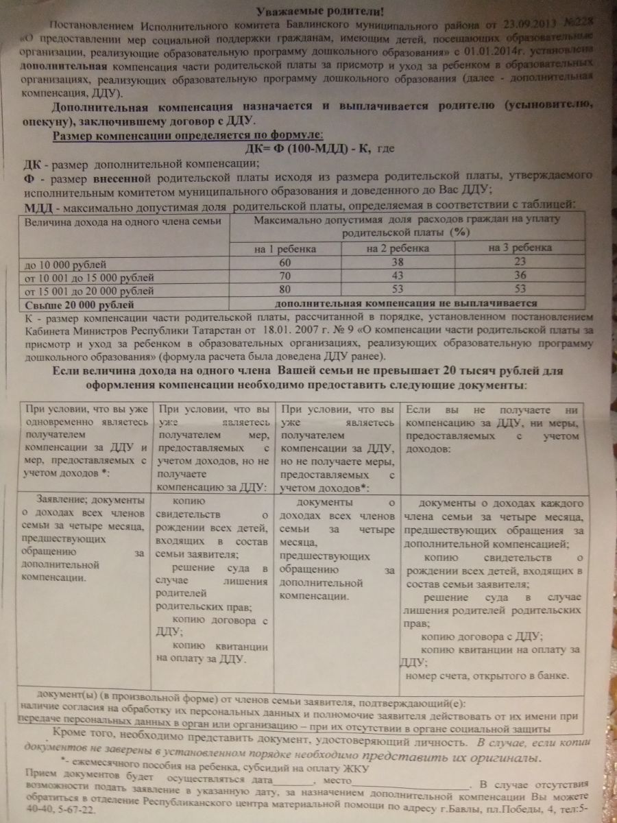 Перечень документов предоставляемых получателем для выплаты дополнительной компенсации на оплату
