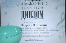 26 января в г. Казани прошел Всероссийский фестиваль-конкурс классического музыкального искусства «Симфония таланов» , ансамбль «Настроение» рук. Юртаева Е. А. в номинации «Профессионал. Ансамбли малой формы» награжден дипломом лауреата 2 степени.