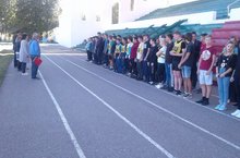 Звучит гимн. Директор колледжа В.Л. Шафиков поздравил ребят с началом нового учебного года и пожелал успехов в учёбе.