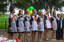 Для трех выпускниц школы прозвенел сегодня последний звонок. Пожелания добра , здоровья, успехов на экзаменах прозвучали в адрес выпускников от учителей, родителей и гостей.Свои пожелания старшим товарищам выразили и первоклассники.