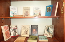 В школьной библиотека организована выставка книг "Они писали о войне". Библиотекарь школы Тараканова И.А. делает обзор данной выставки, рассказывает о поэтах и писателях,участвовавших и писавших о Великой Отечественной войне.