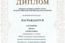 Учащаяся 11 класса Алатырева Диана стала призером Регионального этапа Всероссийской олимпиады школьников по физической культуре.