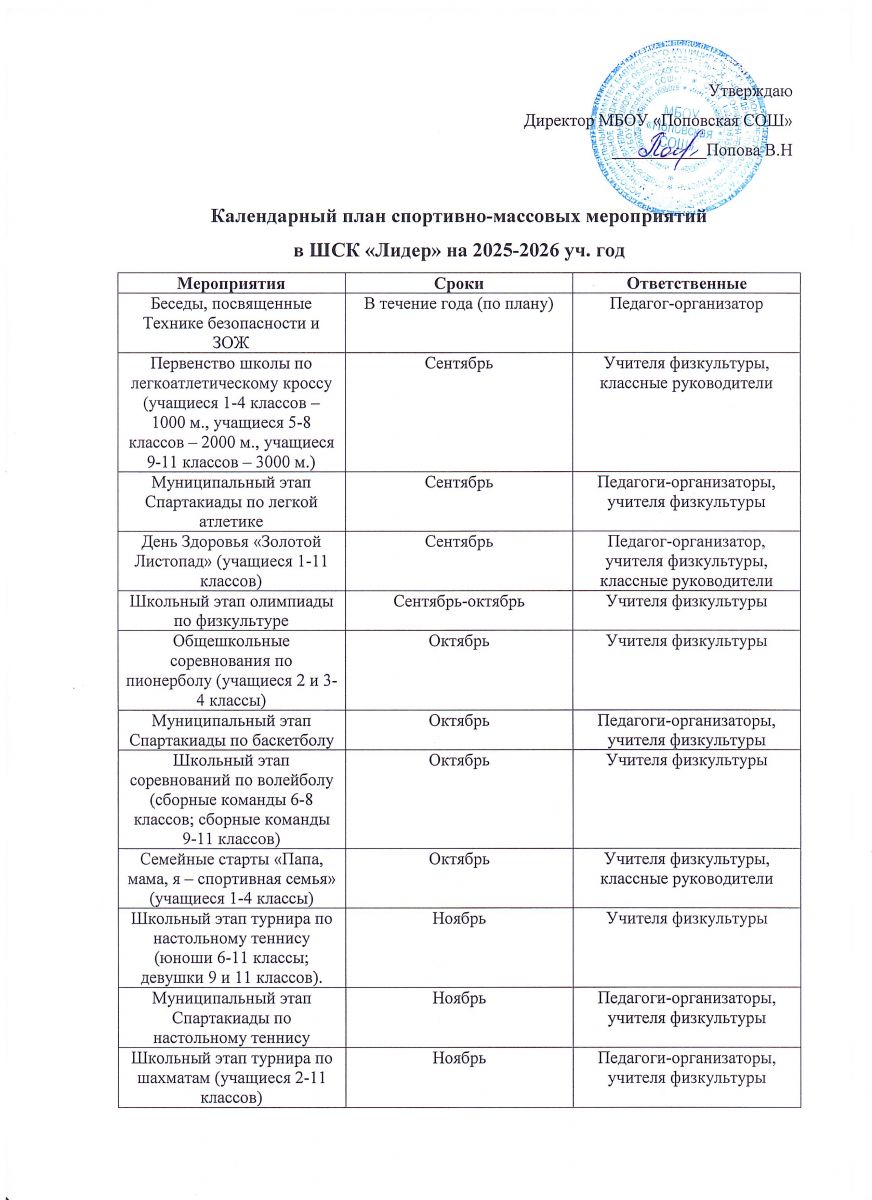 - Календарный план спортивно-массовых мероприятий