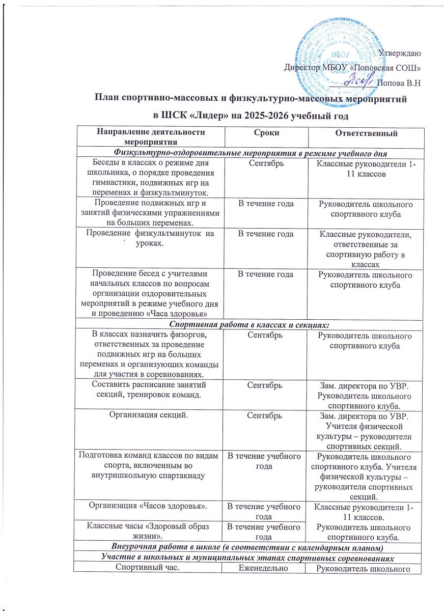 Короткое название: | МБОУ "Поповская СОШ" |