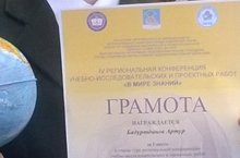 Безнең мәктәпнең 2 а сыйныф укучысы Бадуртдинов Артур IV төбәкара "Белем дөньясында" исемле уку-укыту-тикшеренү һәм проект эшләре конференциясендә 1 нче урынны яулады. (Җитәкчесе: Абзалова Н.В.) Әфәрин, котлыйбыз!