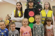 Дошколята с юными инспекторами движения, с Вовочкой и Светофором вспомнили о том, какие знаки им встречаются на дороге и что они означают; как светофор нам подсказывает на дороге; как безопасно вести себя на улице и как правильно переходить дорогу.