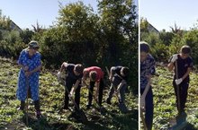 В рамках Осенней недели добра обучающиеся 9-ых классов совместно с ГАУСО "Милосердие" оказали помощь ветерану-тыловику Кальмасмовой Н.З. по сбору урожая.