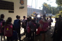 учебная эвакуация 16.09.201715 сентября прошла пожарная эвакуация учащихся и сотрудников школы, работники пожарно-спасательной службы показали первоклассникам устройство пожарной машины и рассказали о работе пожарных.15 нче сентябрьдә мәктәптә янгын чыгу буенча укучылар һәм мәктәп хезмәткәрләре өчен эвакуация узды. Янгын сүндерү хезмәткәрләре беренче сыйныф укучыларына янгын сүндерү машинасы һәм җайланмаларын күрсәттеләр, үз хезмәтләре турында сөйләделәр.
