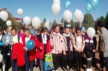 Ученики 5х классов приняли участие в акции " Голубь мира" и запустили шары в память о тех, кто подарил нам Мир во всем Мире -