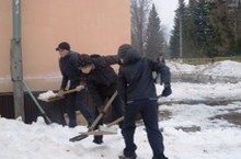 С 1 апреля в городе начался двухмесячник по уборке территорий. Наши ребята тоже вышли на свою территорию раскидывать снег. -