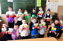 Ученики начальных классов под руководством учителя труда Ганиевой Г.Р. подготовили открытки для своих отцов 21.02.2025
