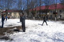 17 апреля проведена акция "Чистый двор". Учащиеся школы (8,10 кл) очистили от снега территорию школы.