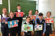 4нче б сыйныф укучылары әби-бабаларына багышланган рәсемнәр ясадылар.