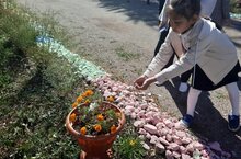 Сегодня учащиеся 4-5 классов присоединились к акции «Капля жизни» в память жертв Беслана, которые все три дня, находясь в заточении, не могли выпить и капли воды. Педагог-организатор Любовь Александровна рассказала ребятам отцеди акции и предложила им напоить всех тех, кого уже с нами нет. Каждый из вас может подойти к чаше с водой, набрать в ладони немного воды и с пожеланием светлой памяти всем безвинно погибшим напоить цветы, которые растут на клумбе.