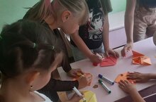 Вожатые познакомили ребят с техникой оригами и показали, как, используя несложные приемы в работе с бумагой, можно создать образ птицы или животного -