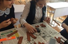В школе началась подготовка к празднованию Дня Победы. 03 мая учащиеся школы прошли мастер-класс по изготовлению брошей из георгивских лент. В начале занятия они ознакомилис с информацией о возникновении данной традиции, значении георгивской ленточки.