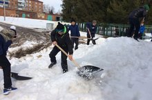 1 апреля начался 2-х месячник по очистке и благоустройству города. Учащиеся нашей школы вышли на субботник на очистку от снега территории школы.