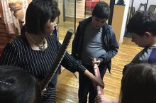 Ученикам рассказали об истории удмуртского народа, о быте удмуртов, их обычаях и преданиях. Больше всего ребят заинтересовали старинные удмуртские костюмы, которые сотрудники музея показали ученикам, подробно рассказав об их назначении и особенностях.Бүген 6-а сыйныфы укучылары Туган якны өйрәнү музеенда булдылар. Укучыларга удмурт халкының тарихы, тормыш-көнкүреше, гореф-гадәтләре турында сөйләделәр. Укучыларга бигрәк тә удмуртларның әби-бабайларның сандыкларында сакланган борынгы киемнәре һәм ул киемнәрнең үзенчәлекләре ошады