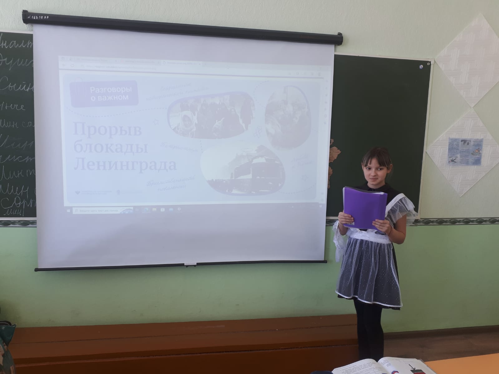 16.01.2023 занятия курса внеурочной деятельности "Разговоры о важном" в МБОУ Сокольской ООШ прошли на тему «Прорыв блокады Ленинграда». Обучающиеся вспомнили героические страницы истории – блокаду Ленинграда и ее прорыв, говорили о Ладожском озере — дороге жизни, «ленинградском ломтике хлеба», метрономе, «блокадной ласточке» - символе надежды на лучшее, на скорую встречу с родными и близкими, познакомились с отрывками из дневников Юры Рябинина, Тани Савичевой, жившими в Ленинграде во время блокады, посмотрели видеообращение жителей блокадного города.