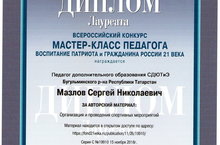 Педагоги МБОУ ДО СДЮТиЭ Мазлов Сергей Николаевич, Маханько Ольга Николаевна, Федотова Елена Павловна приняли участие во Всероссийском конкурсе « Мастер – класс педагога: Воспитание патриота и гражданина России 21 века». Мазлов С.Н. уже получил ДИПЛОМ лауреата за авторский материал: Организация и проведение спортивных мероприятий. Маханько О. Н. получила СВИДЕТЕЛЬСТВО о публикации сценария мероприятия « Экскурсия в музей русского валенка», ДИПЛОМ лауреата ЗА авторский материал: "Оживший рисунок". Федотова Е.П. ожидает свой результат, она отправила работу П.И. Рычкове : презентацию и разработку урока – семинара. В этом конкурсе приняло участие около 6тысяч педагогов и воспитателе ДОУ со всей страны. Спасибо нашим педагогам за участие.