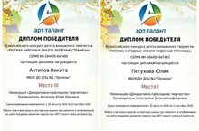 Обучающиеся ДПЦ №1 приняли участие в Междукнародном творческом конкурсе. Все обучающиеся взяли призовые места. Поздравляем! Так держать!