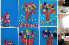 Обучающие учились рисовать в технике "Рисование ватной палочкой" листья деревьев.