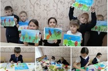 В студии "Мастерилка" была проведена экологическая беседа на тему: "Осень золотая". Ребята совместно с педагогом выполнили проектную работу на ватмане.