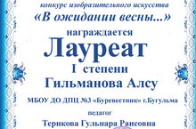 Лауреат Республиканского конкурса изобразительного искусства "В ожидании весны" 27.02.2018