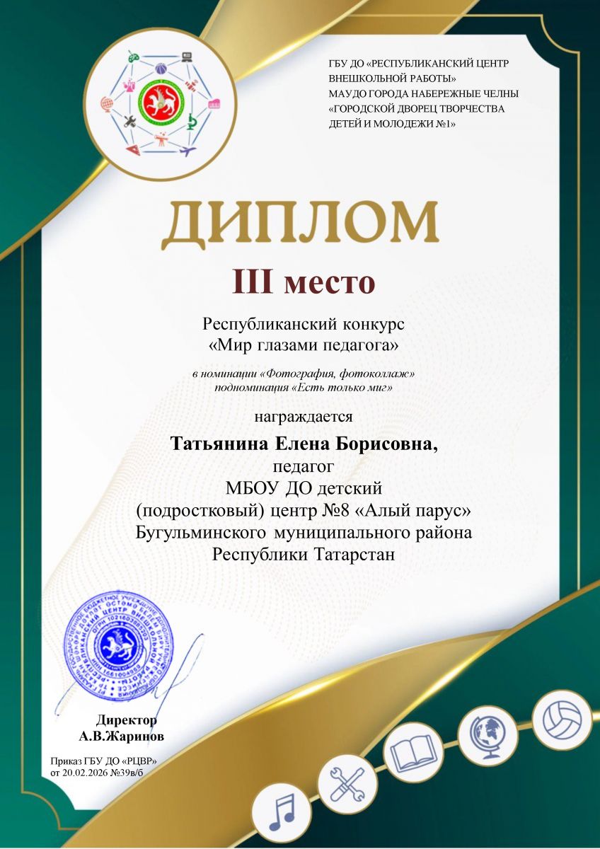 Муниципальное бюджетное образовательное учреждение дополнительного образования детский (подростковый) центр №8 «Алый парус" Бугульминского муниципального района Республики Татарстан / МБОУ ДО "Балалар (яшүсмерләр) үзәге 8-нче номерлы "Алый парус" Бөгелмә муниципаль районы"