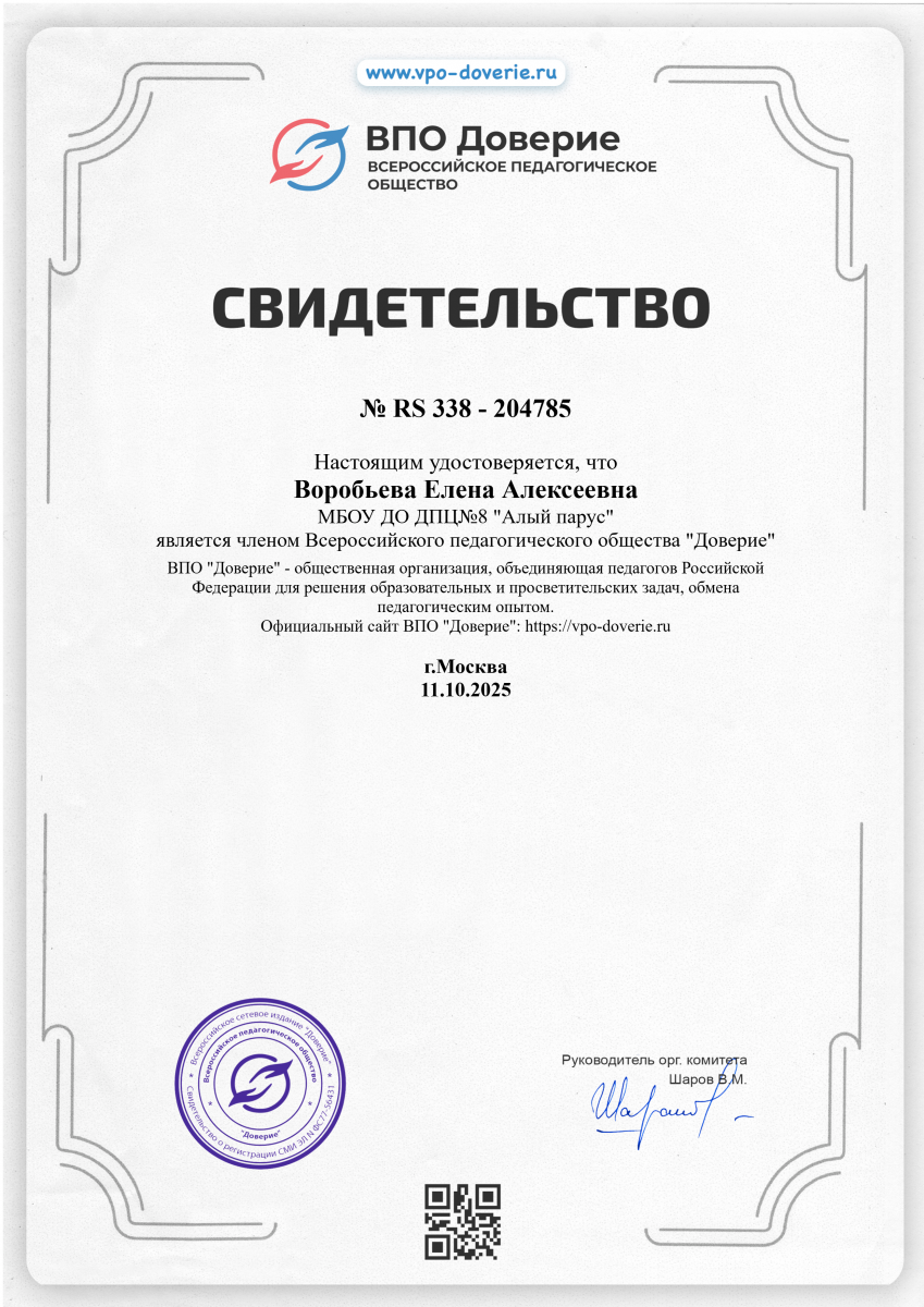 Воробьева Е.А Всероссийский Сертификат