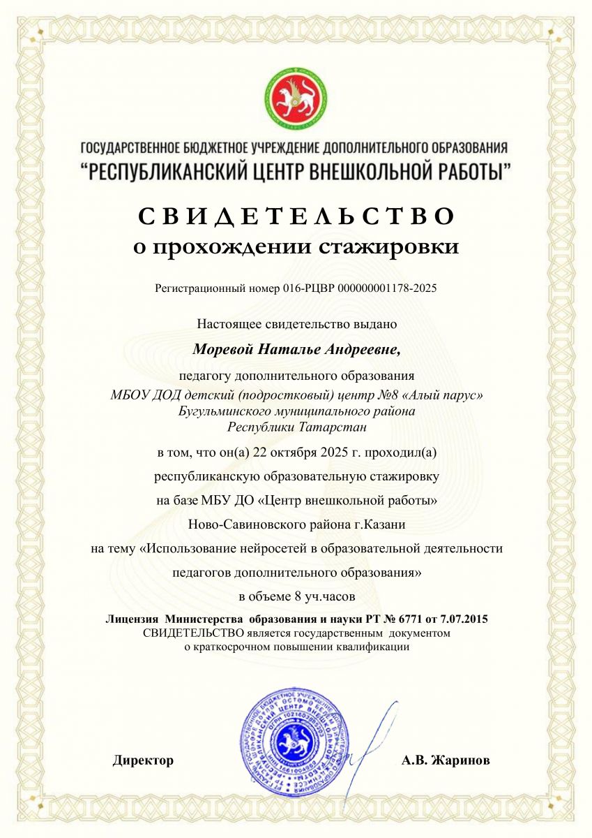 Морева НА Свидетельство Республика стажировка