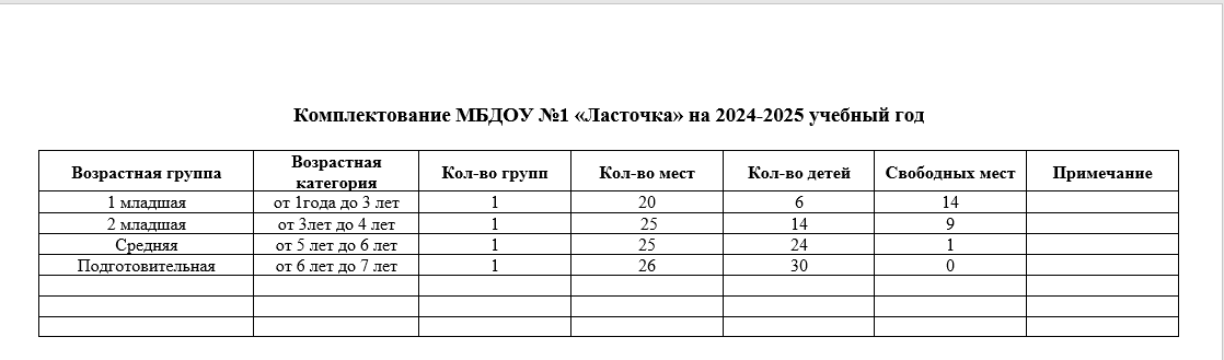 Комплектование МБДОУ №1 «Ласточка» на 2024-2025 учебный год