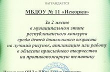 С 25 по 27 ноября 2016 года в Санкт-Петербурге проходил V Всероссийский образовательный форум «Школа будущего». В рамках форума проведен конкурс «100 лучших ДОУ России». По результатам конкурса детскому саду № 11 «Искорка» присвоено звание лауреата конкурса с вручением диплома и золотой медали «100 лучших ДОУ России».