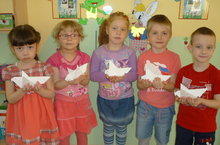 Акция «Голубь мира», посвящённая празднику Великой Победы 26.03.2015Каждый год с приближением майских праздников необъяснимое чувство боли, тревоги и гордости за свой народ испытывает душа. Ведь Великая Отечественная война прошла ломаной линией по судьбам многих семей.Задача родителей и педагогов не забыть истории о ВОВ и передать нашим детям, чтоб и они знали и помнили, какой ценой была завоёвана Победа.Со школьниками немного легче. А как быть с теми, кому 4-7 лет? Как рассказать о войне дошкольникам, имеющим пока смутное представление об истории? Как донести в эти маленькие сердца столь непростую и взрослую тему? Стоит ли им рассказывать о том, сколько бед и несчастий принесла нашему народу война?Несомненно, стоит! Чтение детских книг о войне, беседы, рассказы, встречи с ветеранами, воспоминания близких, семейные реликвии естественным образом формируют у ребёнка историческую память, дают ощущение сопричастности далёким героическим событиям. Важно пробудить у дошкольников чувство сострадания к людям, прошедших и переживших войну, воспитывать чувство патриотизма и любви к своему народу и стране.26 апреля в нашем детском саду была проведена акция «Голубь мира», посвящённая празднику Великой Победы.Цель акции: воспитывать у детей чувство любви к Родине, гордости за свой народ; формировать представление о героизме; расширять представление о защитниках страны в годы Великой Отечественной войны.На предложение изготовить своими руками белых голубей - символов мира, добра и благополучия, откликнулись все дошколята старшей и подготовительной к школе групп. Голуби получились разного размера, формы, техник изготовления, но одно объединяло этих белых птиц - их делали дети с верой в мирное будущее и желанием, чтоб та страшная война, о которой беседовали с ними, никогда не повторилась. Понимая по-своему, по-детски, рассуждали: «Чем больше сделаем голубей, тем дольше не будет войны!»…Старались, вырезали и складывали. Просили: «Давайте ещё!»Педагоги, родители! Предлагаем ввести добрую традицию по изготовлению символов мира к каждому празднику Дня Победы.Пусть это станет наши детским «Мы помним...»!