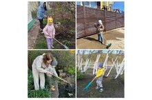В предверии первого мая родители и воспитанники детского сада приняли участие в акции "Мир, труд, май" по благоустройству придомовых территорий.