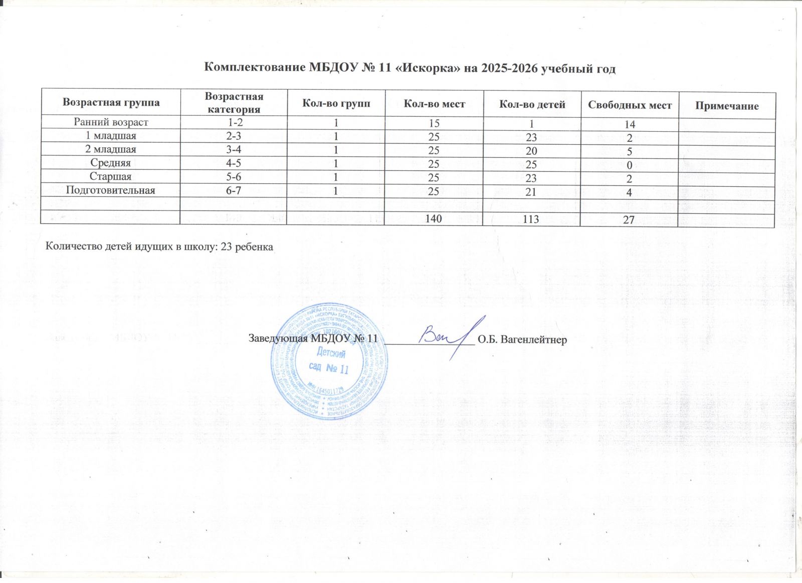 Комплектование МБДОУ №11 "Искорка" на 2025 - 2026 учебный год