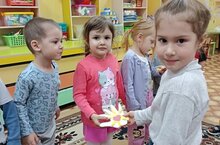 Дети с добрым визитом поситили малышей . Ребята читали стихи, пели песни, играли вместе с малышами. В подарок оставили хорошее настроение, ну и конечно же маленькие подарочки сделаные своими руками -