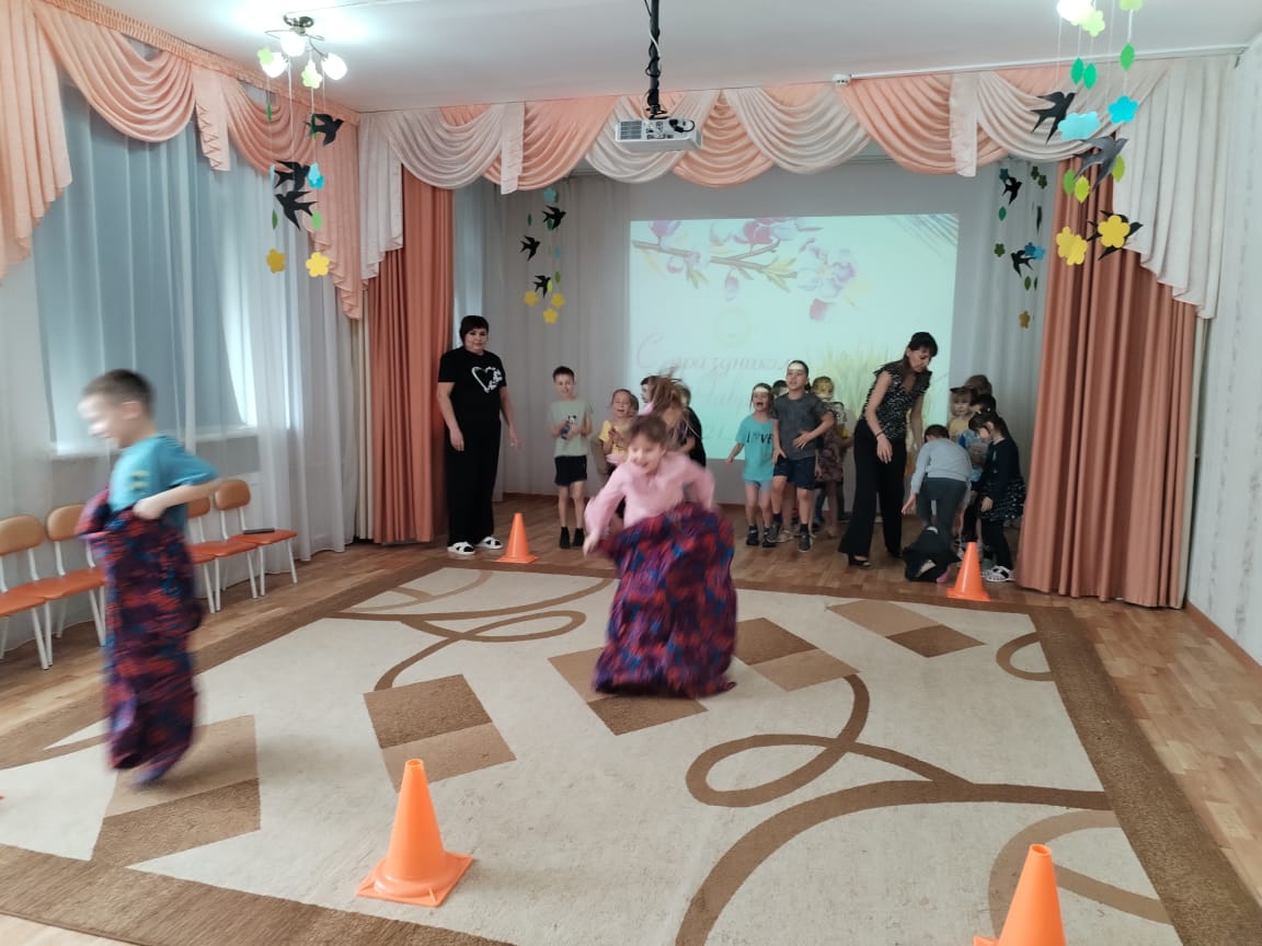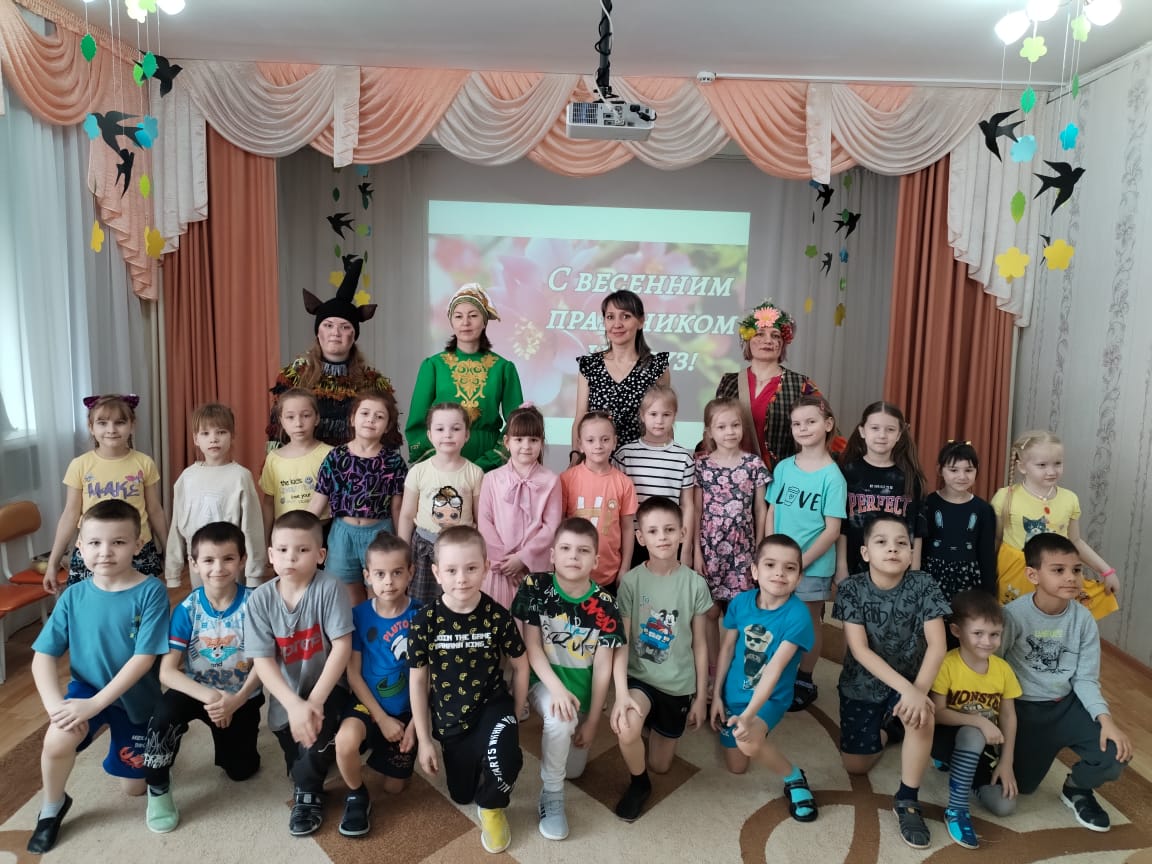 На празднике у ребят побывали Баба-Яга (Деркач З.М.) и Шурале (Юрченко К.М.), которые соревновались в силе, ловкости и быстроте. Вместе с детьми они водили хороводы, пели песни о весне, играли в башкирскую народную игру «Юрта». Дети с большим желанием участвовали во всех играх и эстафетах.