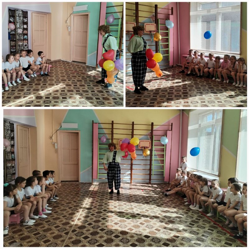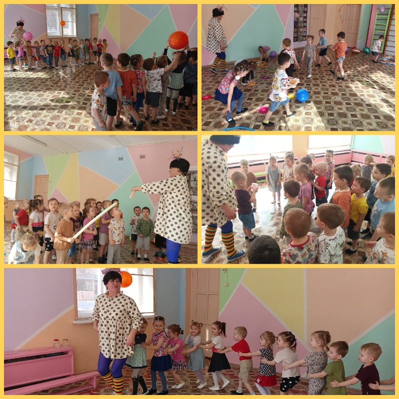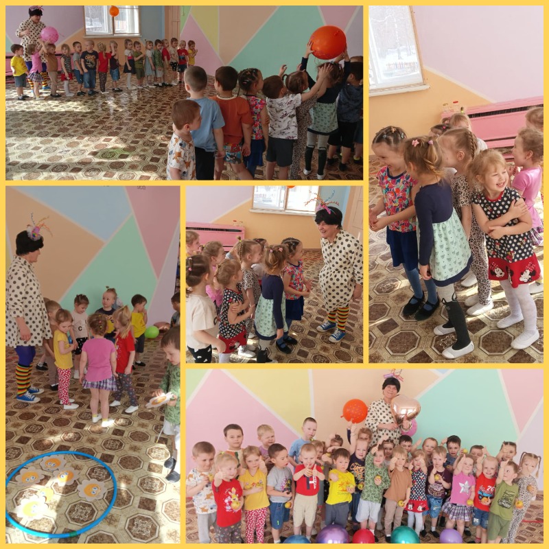 Сегодня подготовительные к школе группы "Солнышко" и "Ромашки" начали день не просто с улыбок, а с весёлым и забавным клоуном, которой принёс с собой игры, шутки и смех. А его помощниками были обычные воздушные шары, которые и помогли устроить праздник Смеха. А одна из игр так и называлась "Хохотушка": подбрасывается платок и, пока он падает, все должны громко смеяться. Даже солнышко, весело улыбаясь, светило в окно и играло с детьми своими лучами, а дети в ответ станцевали танец "Солнечные лучики". Все получили большой заряд бодрости, радости и положительных эмоций.