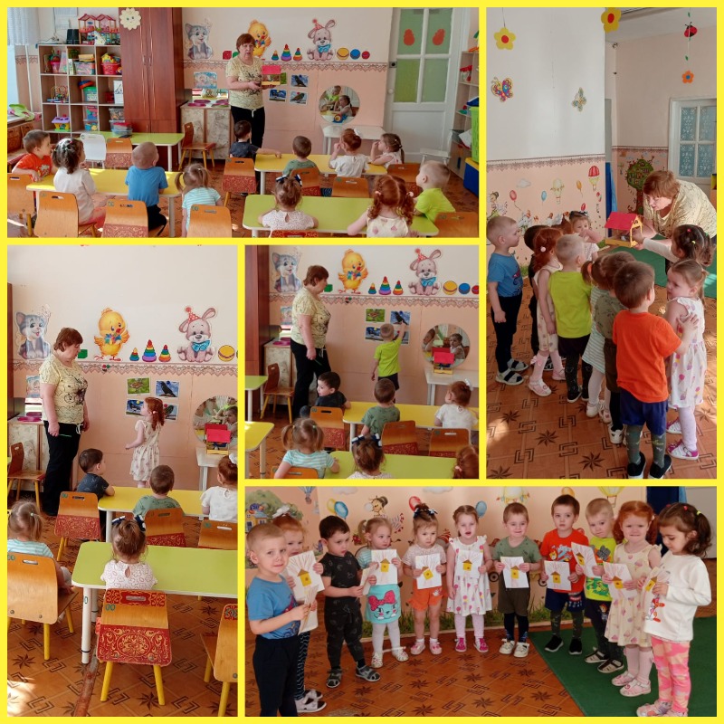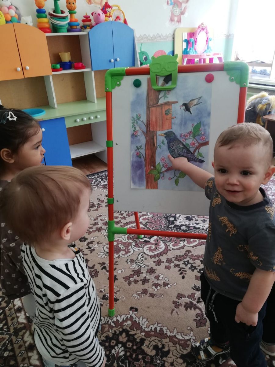 В группе дети во время беседы узнали о необходимости заботиться о птицах в холодный сезон, когда они нуждаются в заботе и помощи людей. Прослушали стихотворение А. Барто «Птички», рассматривали иллюстрации, кормушки, скворечники. Поиграли в подвижные игры «Птички в гнездышках», «Воробушки и автомобиль».