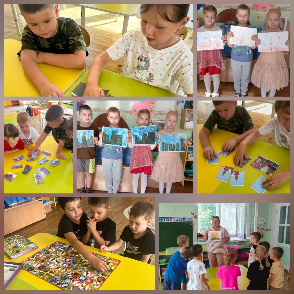 В течение тематической недели ребята повторяли горсударственную и негосударственную символику России, читали русские народные сказки, отгадывали загадки, выучили гимн страны, рассматривали иллюстрации своего родного города, а также рисовали многоэтажные дома на улицах Бугульмы.