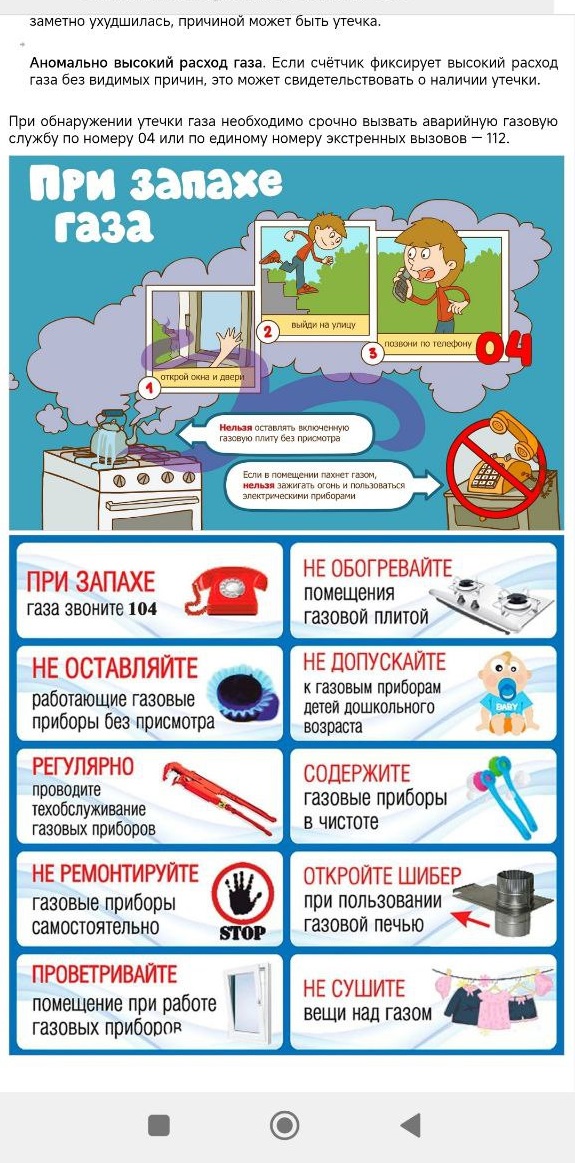 При обнаружении утечки газа необходимо срочно вызвать аварийную газовую службу по номеру 04 или по единому номеру экстренных вызовов — 112.