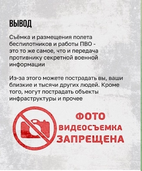 Фото и видеосъёмка полёта БПЛА и работа ПВО ЗАПРЕЩЕНА!!!