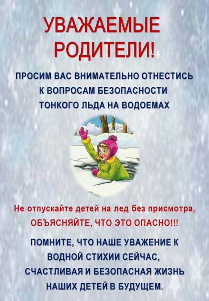 Тонкий лед становится причиной гибели людей, чаще всего среди погибших оказываются дети, которые гуляют вблизи замерзших водоёмов без присмотра родителей, выходящие на свой страх и риск на непрочный и коварный лед.