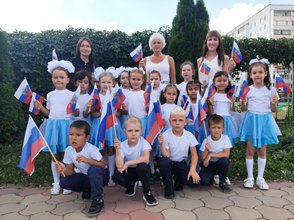 Ежегодно 22 августа в России отмечается День Государственного флага Российской Федерации. В нашем детском саду прошли мероприятия, посвящённые Дню рождения Российского флага. С самого утра в детском саду звучали песни о России. Во всех группах были проведены комплексные игровые беседы «История Российского флага», «Цвета родной страны», "Гордо реет флаг державный". Воспитанники подготовительных групп приняли участие в городском мероприятии,где показали флешмоб «Один флаг-одна Россия". музыкальные руководители: Колмакова А.Р., Кошелькова Л. М., воспитатели подготовительных групп №5, №10, №4. -