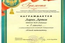 Поздравляем Ларина Артема - Победителя городской интеллектуальной олимпиады дошкольников "Юный математик". Желаем дальнейших успехов.